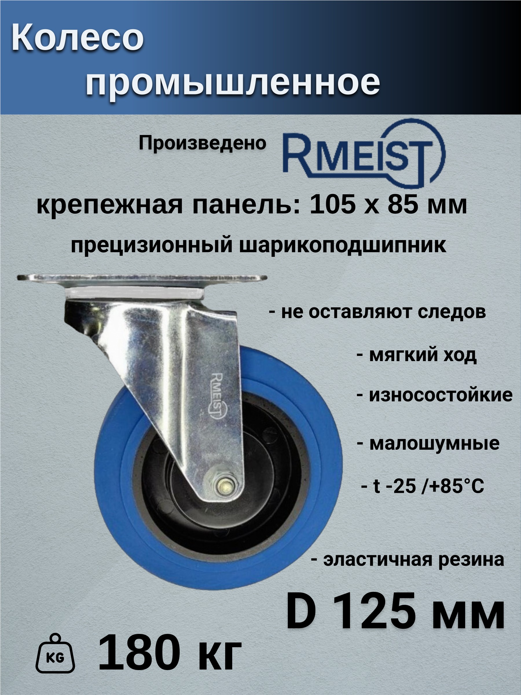 Колесо промышленное с синей термопластичной резиной Rmeist IMS 125 PJP1 S62 blue поворотное без тормоза, 125 мм, крепежная панель P62-105x85 мм, RM00000020ВИ
