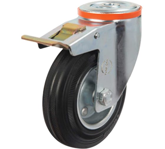 Колесо с кронштейном, креплением под болт, защитой и тормозом EMES EM04SPR125X375TF