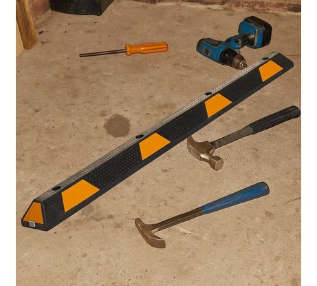 Купил колесоотбойник для стоянки возле цеха, чтобы не повредить стены и машины. Отбойник сделан из толстого металла, краска ровная и не облезает. Крепится просто и держится надежно, машина уже не цепляет стены. Очень удобный, снижает стресс при парковке. Качество видно сразу — вещь хорошая и долговечная.