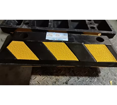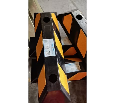 Похожий, но чуть длиннее/массивнее — для более тяжёлых авто подходит лучше. Использовал в паркинге — отлично выполняет функцию парковочного стоппера. Крепление простое, видимый контраст предупреждает водителя.
