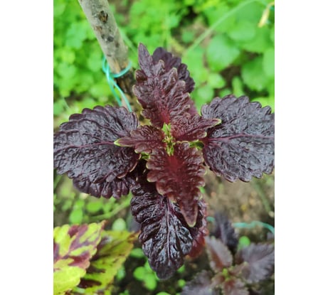 Однолетник. Экзотическое, зазубренные листья с необычным глубоким красным цветом и пурпурно-черным краем - делают этот сорт выделяющимся от других Колеусов. Идеально подходит для горшечной культуры, бордюрных посадок и клумб.