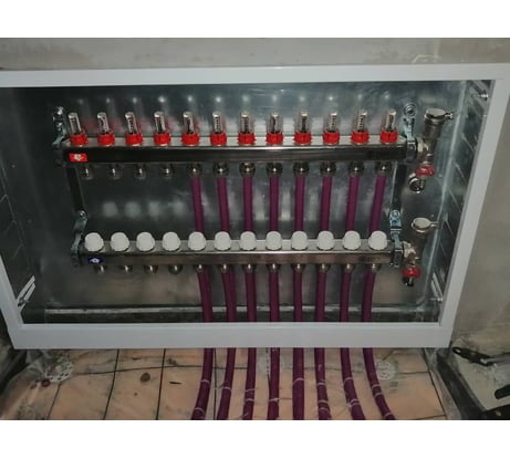 - Обеспечивает независимое друг от друга присоединение колец системы отопления и распределение по ним теплоносителя;