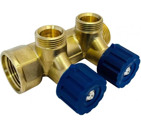 Коллектор латунный Апогей КЛА 2002.045-4У-ВГР(С)-15 DN20 ВР3/4- НР3/4 м/о 45 мм НР1/2''ЕК с регулирующими вентильными головками синими на 2 выхода 411013
