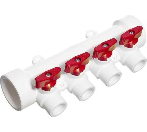 Коллектор полипропиленовый Imperial белый, с кранами, 4 выхода, красный, ф40-20 PPR 40-045