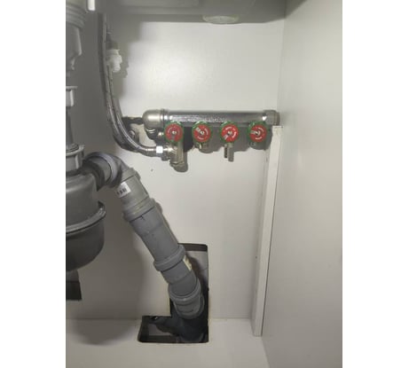 Хороший коллектор, работает, брал под мойку на кухню, пртому что не захотел калхозить тройниками, а мне 4 потребителя нужно было, с помощью уголков идеально подошло, и много места не занимает, краны все держат, не течёт, рекомендую