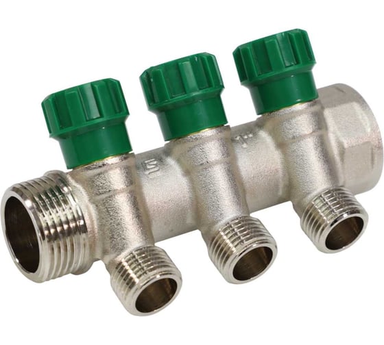 Коллектор с регулирующими клапанами SantechSystems 1", 3 выхода под плоское уплотнение 1/2" н/р, межосевое расстояние между выходами 36мм 129-9349