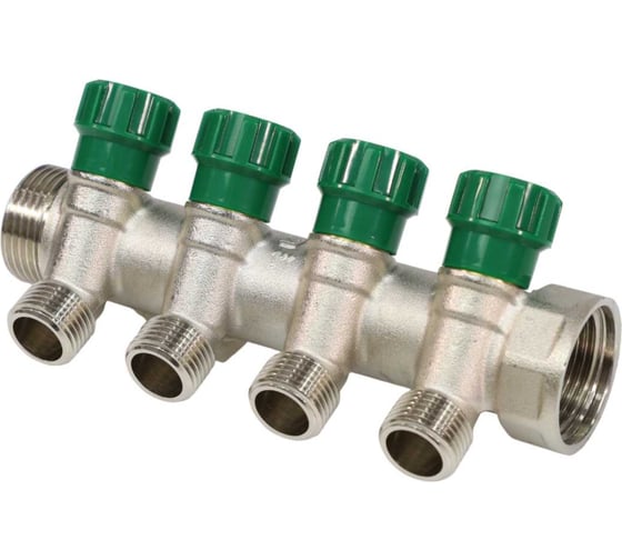 Коллектор с регулирующими клапанами SantechSystems 1", 4 выхода под плоское уплотнение 1/2" н/р, межосевое расстояние между выходами 36мм 129-9350