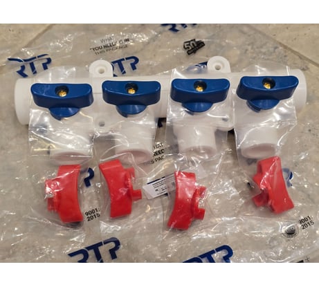 Коллектор с шаровым краном RTP универсальный PPR 25x20/4 28200 применяется в системах отопления, холодного и горячего водоснабжения, а также при установке теплого пола.