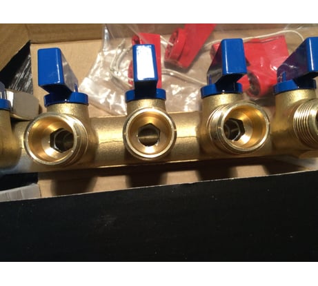 - Применение коллектора с шаровыми кранами позволяет отключать отдельного потребителя системы отопления или водоснабжения без перекрытия основного потока
