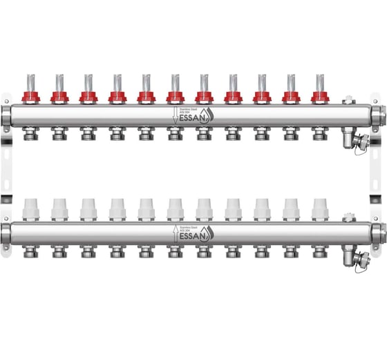 Благодаря этому распределительный коллектор ESSAN обладает рядом преимуществ, среди которых надежность конструкции, качественные материалы, оптимальная комплектация блока, варианты исполнения для теплого пола и для радиаторной разводки.