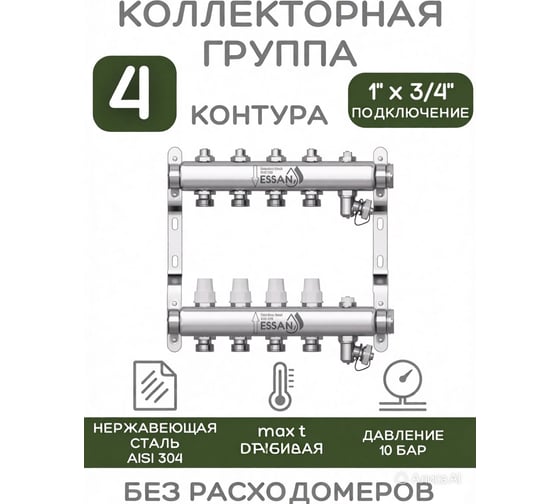 Коллекторная группа ESSAN GROUP803 нержавейка, 1"x3/4" EK 4 выхода, без расходомеров 180322504-77