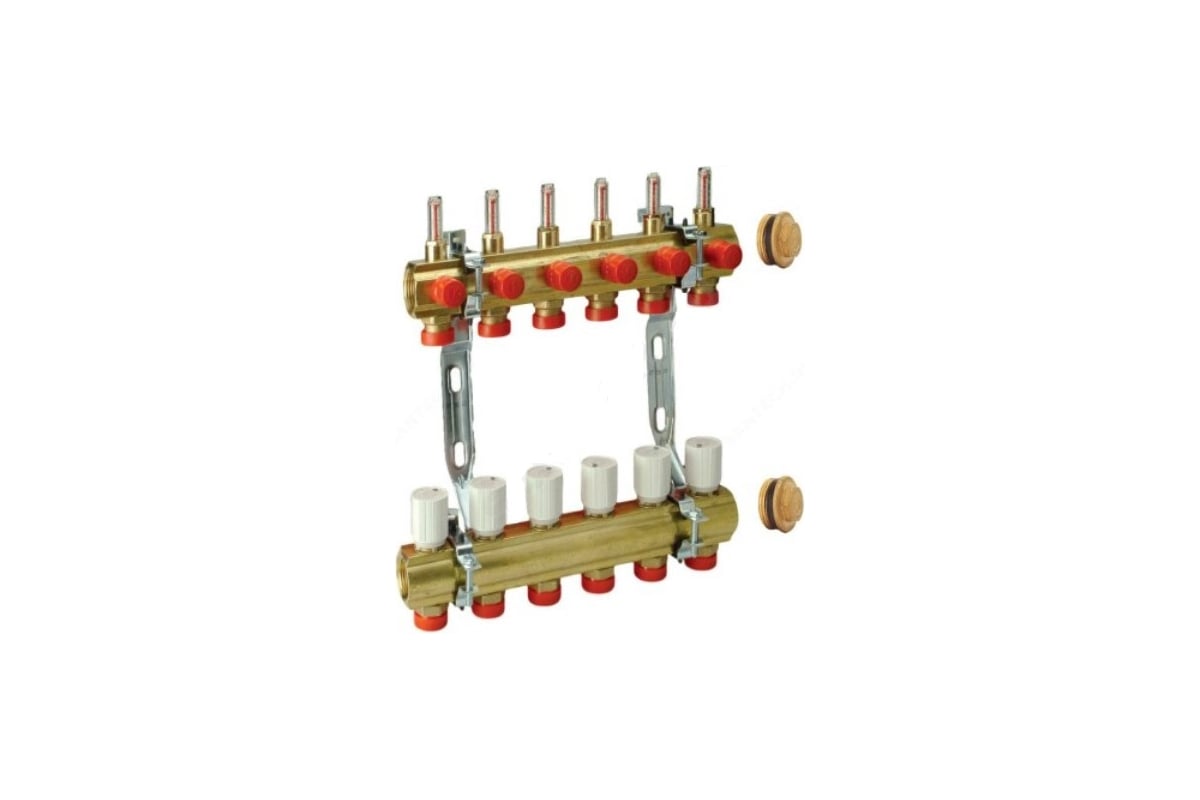 Сопутствующие товары для коллекторной группы Giacomini R553K латунь 1 ВР/ВР, 11 выходов 3/4 НР под евро с расходомерами