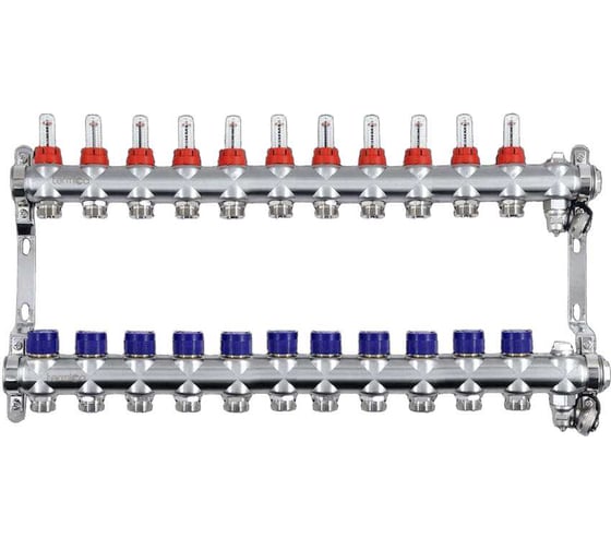 - Точная настройка — ручные настроечные клапаны с расходомерами позволяют индивидуально регулировать расход в каждом контуре для достижения оптимального теплового комфорта