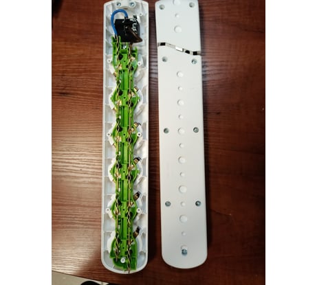прислали без ушек, никаких вы на стену колодку не приделаете, это только колодка чтобы сделать удлинитель.