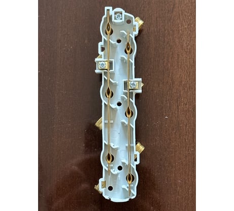 Приемлемое качество, хотя Makel сейчас уже не тот, что был раньше. Очевидно, экономия и оптимизация производства. Пластик корпуса тонковат, внутренние провода явно слабоваты, не для заявленных 16 А и 3,5 КВт. Сборка удлинителя простая. Двойная шина, плотные гнёзда, контакты хорошего качества на винтах, крепко фиксируют провод.
