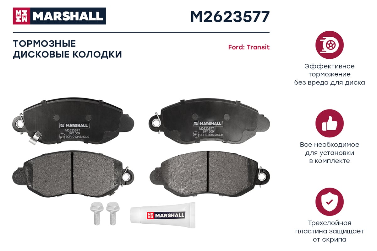 Технические характеристики дисковых передних тормозных колодок Ford Transit VI 00- MARSHALL M2623577
