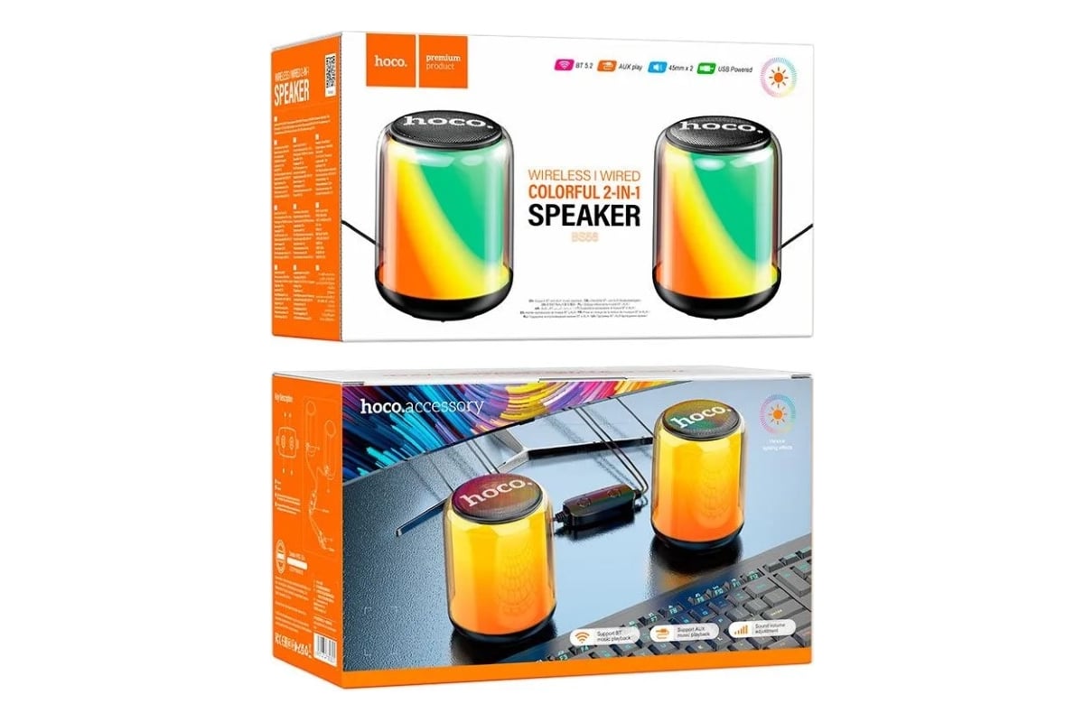 Расходные материалы для колонки Hoco Bluetooth bs56 colorful bt5.2, 2x5w, aux