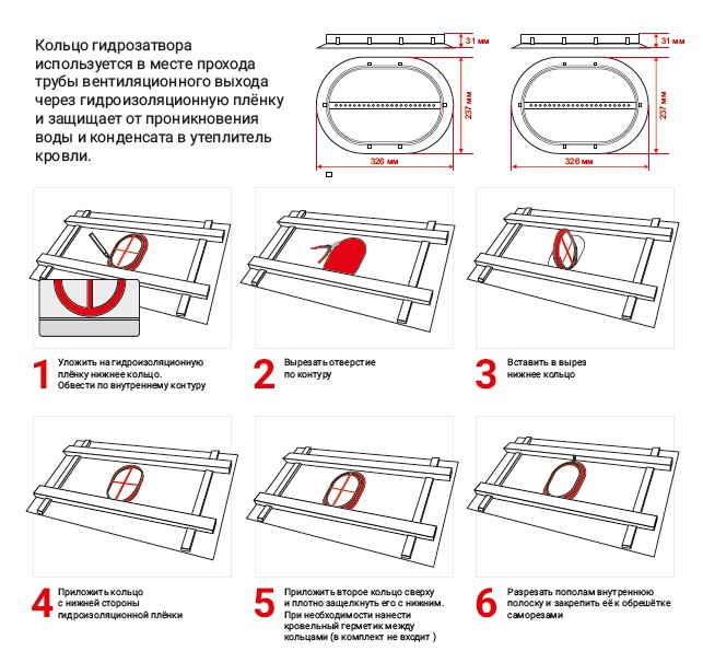 Кольцо гидрозатвора Gervent применяется при монтаже кровельной вентиляции.