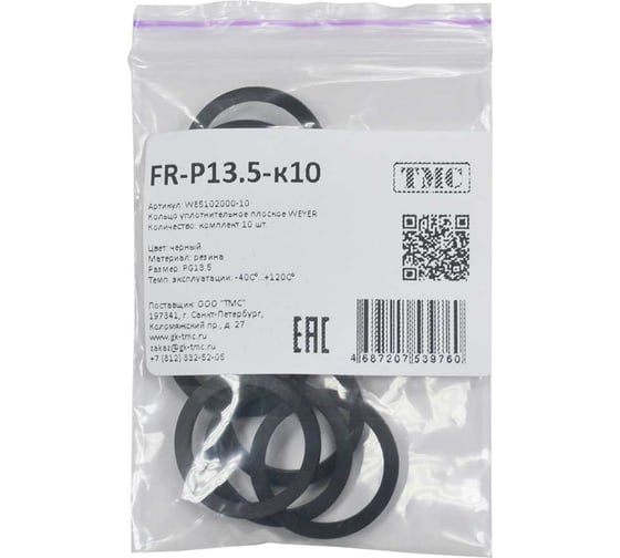 Кольцо уплотнительное плоское Weyer FR-P13.5-к10 резина, цвет черный, внутр. PG13.5, комплект-10 шт. WE5102000-10