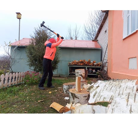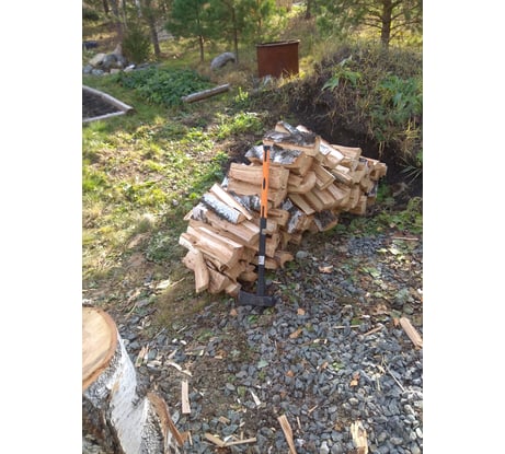 Колун суперский - я в восторге. Покупал для колки дров в мангал (колоть по десять кубов, как некоторые пишут необходимости нет) - люблю, когда под рукой есть нужный инструмент. Долго метался между потяжелей - подлиннее и полегче - покороче. В отзывах мужики здоровые, а я 176 и 88, больной и кашляю (шутка) Хочется чтоб колол, но и перенапрягаться не очень. Когда забирал из магазину, взяв в руки подумал что погорячился. Но когда расколол первое полено - понял, что не прогадал. Двадцати сантимеровое полено берёзы даже бить особо не пришлось - только чуть направить, а все, что меньше полчурки он колет сам его нужно просто отпустить. В более ранних отзывах прочитал про слабую защиту от промаха. Испытывать не стал - натянул кусок канализационной трубы (фото) и правильно сделал. Первое полено раскололось на две большие и одну маленькую часть (ударил чуть дальше центра полена), которая как раз и уперлась в онование. Труба оказалась кстати.