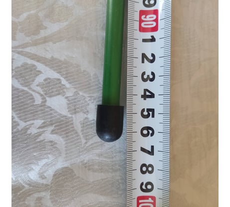 Короче заявленного размера. Нет заглушки на конце, которым втыкается в землю. В остальном обычный колышек за небольшие деньги. Покрытие нанесено ровно, заусенцев нет.