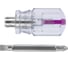 Комбинированная отвертка предназначена для монтажа/демонтажа крепежных соединений. Двухсторонний стержень инструмента выполнен из высококачественной хромованадиевой стали. С одной его стороны располагается шлиц PH2, с другой – SL6. Наконечники намагничены, благодаря чему шуруп, саморез или винт не упадет при извлечении или установке. Прозрачная эргономичная рукоятка делает работу с инструментом легкой и удобной. Длина двухстороннего стержня составляет 40 мм.