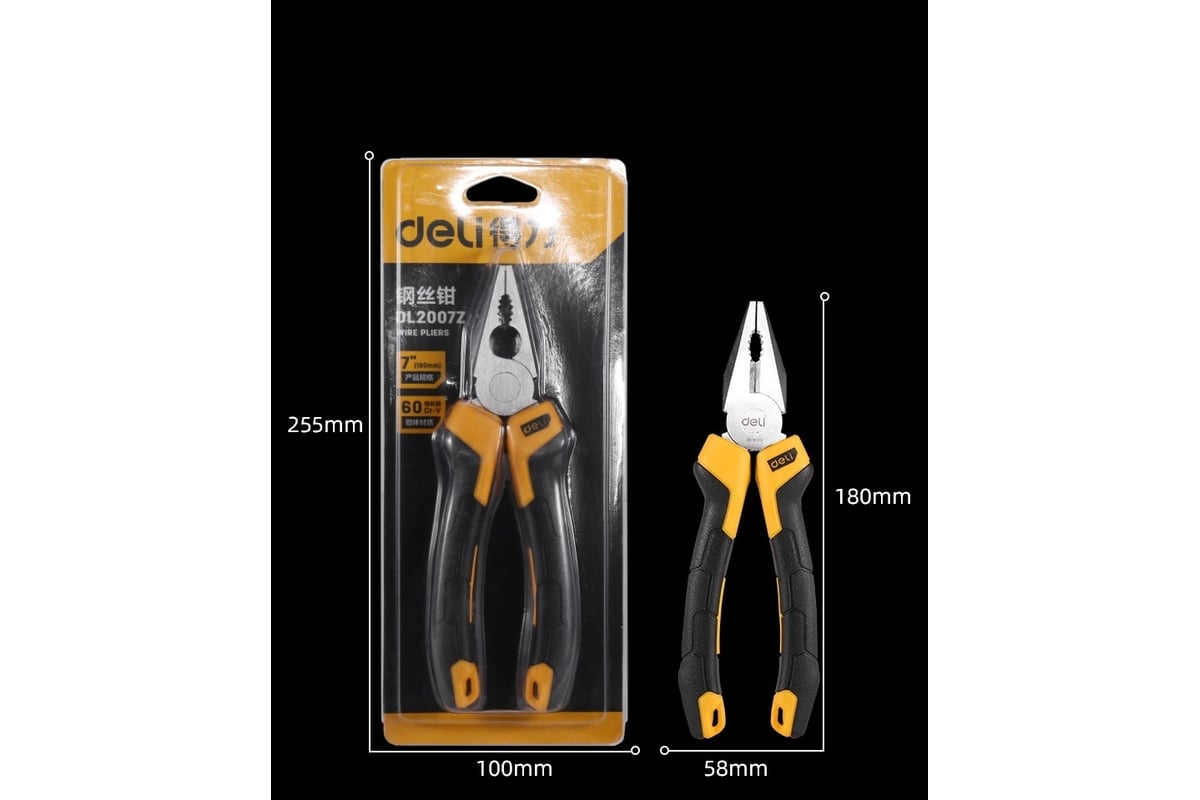 Комбинированные плоскогубцы DELI dl2007z 180мм сталь crv, прорезиненная двухкомпонентная рукоять 110702