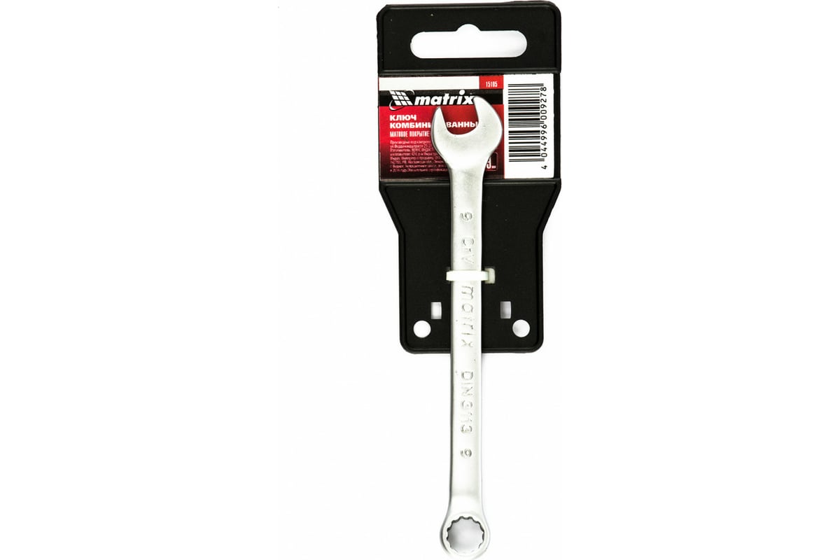 Комбинированный ключ 9 мм MATRIX CrV, матовый хром// 15105