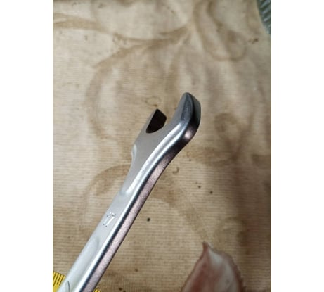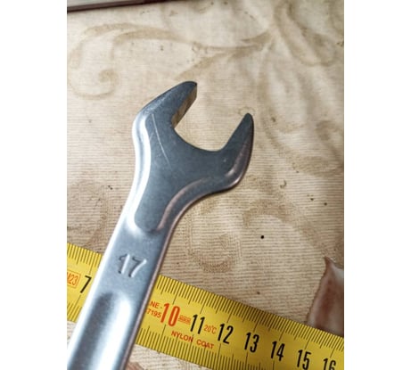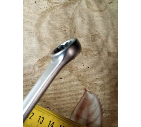 Очень крепкий ключь, размер выдержан, накидная часть глубже чем у обычных ключей и изогнутая рожковая часть помогает иногда залезть в труднодоступное место. Хотя поначалу визуально яорма ключа не понравилась, но теперь все ключи в меня такие. Рожковая часть усиленная с двух сторон(фото).