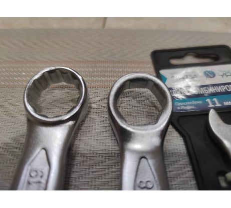 Товар понравился, но разные номера ключей отличаются, есть нормотив 3113 и 755. Набрал поштучно разных ключей для комплектации органайзера: Biber, Rockforce, Nord YADA, Forsage, так же оставались свои пятнадцатилетней давности, судя по всему Matrix, все хром-ванадий, сравнил и готов поделиться интересными наблюдениями. Пришли ключи изготовленные по разным нормативам: 3113, 755(16), а также безномерные. При этом из заказанных Nord YADA все стабильно однотипные (3113), Rockforce вразнобой (3113 и 755(номер)), Biber безномерные, Forsage один заказал, пришёл 75516, но думаю должны быть стабильно однотипные. При этом, что удивительно, Nord YADA поразительно похожи на Rockforce 3113, а Rockforce 755(номер) на Forsage 755(номер) как по качеству покрытия, так и по форме, узору. Только у Rockforce 3113 накидная часть с меньшим числом граней (другой тип). Эти пары ключей настолько похожи, что складывается ощущение будто изготовлены на одном заводе. По качеству Nord YADA и Rockforce 3113 хорошие, широкое основание, достаточная толщина, штамповка чёткая м незначительными очень редкими вераплениями, покрытие заматованное и равномерное, удобны в руке. Rockforce 755(номер) на Forsage 755(номер) тоже хорошее качество, основания похоже чуть толще серий 3113, толщина накидной стороны тоже толще, но с менее элегантным (плавный) загибом, покрытие чуть более блестящее, заматованное, а на рожковой и накидной части- заполированно. Biber (на15) существенно уступает по качеству, тонкое основание, нечеткая штамповка, без номера ГОСТа, мои старые Matrix в этих показателях получше. На прочность не испытывал. Удачи в выборе! 👌