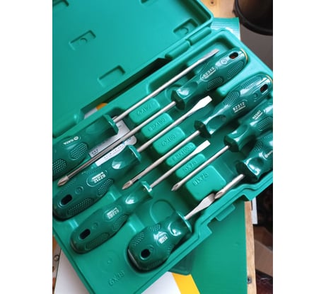 - Закрывающийся кейс для хранения комбинированного набора крестовых и плоских отверток 8шт серия А Sata 09306 в комплекте