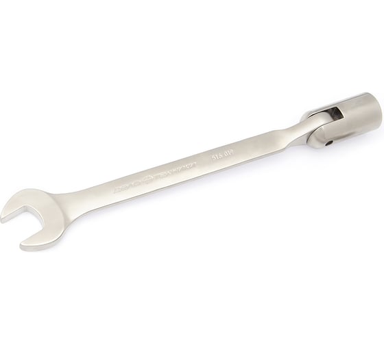 Шарнирный комбинированный ключ представляет собой неразборный вариант привода и удлинителя с шарнирной двенадцатигранной торцовой головкой (угол наклона 180°). Совмещает в себе возможности торцовой головки и рожкового профиля. Предназначен для эффективного использования и передачи значительного усилия при работе в труднодоступных местах. Поворот торцовой головки параллельно телу ключа позволяет быстро отворачивать и заворачивать крепёж, когда не требуется приложение большого усилия. Рожковый профиль позволяет работать с крепежом в случаях, когда доступ к крепежу возможен лишь с одной стороны.