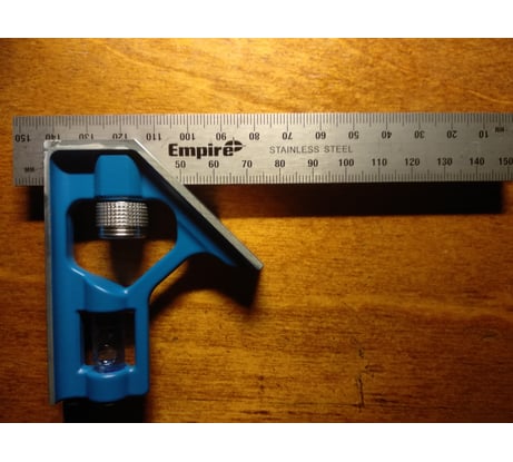 Нужен был комбинированный угольник на 150 мм. Купил empire и ни разу не пожалел. Отличная читаемая шкала, удобное колесо фиксации