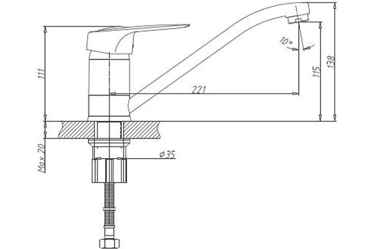 Стенки смесителя выполнены из высококачественной латуни, что обеспечивает его стойкость к перепадам давления и температуры, тем самым подчеркивает свою долговечность. Подводка для воды и крепеж в комплекте. Смеситель подходит для разных интерьеров и типов моек. Длина излива подходит для большинства бытовых кухонных моек. Поворотный излив оснащен аэратором, который существенно понижает уровень шума. Механизм - керамический картридж. Размер картриджа - 40 мм.