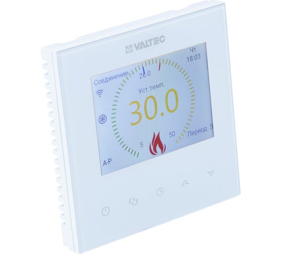Комнатный WIFI-хронотермостат Valtec с цветным дисплеем для электрического теплого пола, белый VT.AC613.W.0