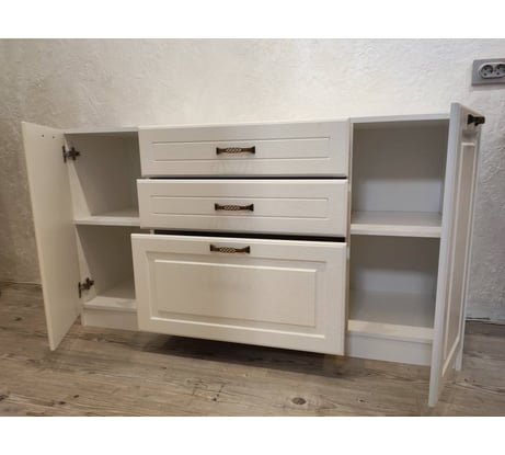 Хорошая вещь. Эксцентрики заменили на металлические( по комментарию одного из покупателей. Спасибо!) Поставили а столовой, оч милый комод.
