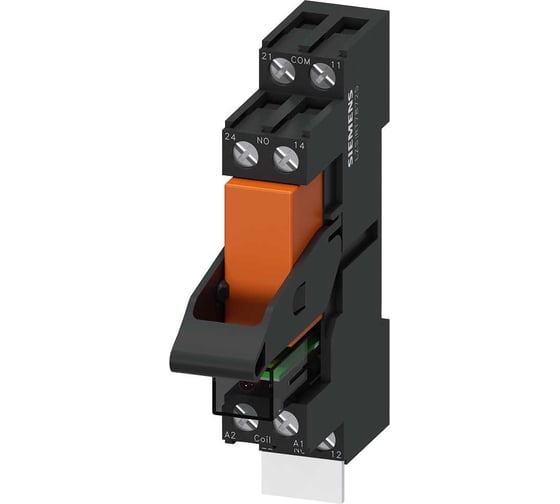 Компактное втычное реле SIEMENS с одним перекидным контактом (1AC), предназначенное для работы при напряжении 230V AC. Оснащено светодиодом красного цвета для индикации состояния. Обладает стандартным цоколем с логическим разделением шириной 5 мм, обеспечивая удобство установки и подключения в электрических системах.