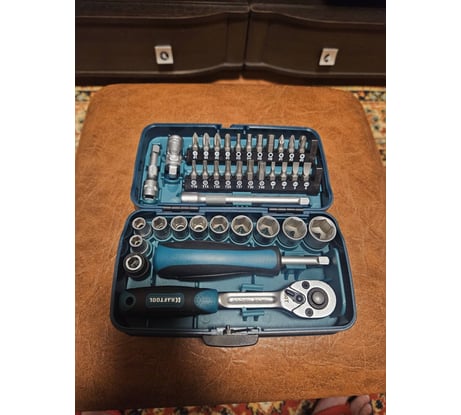 Понять всё великолепие этого набора можно только взяв его в руки! За эти деньги можно купить более наполненный набор, но он будет раза в три крупнее габаритами. С таким наполнением можно купить более дешевый набор, там даже могут оказаться длинные головки, но он будет также крупнее габаритами и возможно сомнительного качества. Существует аналогичный набор Hoegert HT1R462, сине-серый и с обычными шестигранными головками, поставляется в картонной коробке. Это чисто для информации, вдруг не всем нравится желто-зеленая расцветка и супер-лок. Существует ещё Stayer 25135-H39, он вдвое дешевле, но и качество не особо хвалят. Я свой выбор сделал, и доволен больше любого слона!