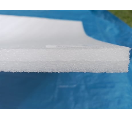 Хороший, плотный, сделан из двух более тонких, но не расслаивается даже если попробовать разлепить на составляющие. Большой размер, метр на метр. Использовала для утепления старой двери. Как теплоизоляция работает хорошо