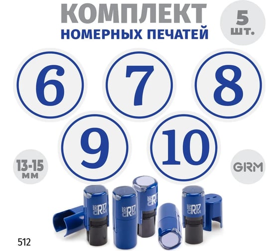 Комплект 5 печатей GRM c номерами № 6, 7, 8, 9, 10, диаметр 15 мм, на r17 корпус синий 217100066-512