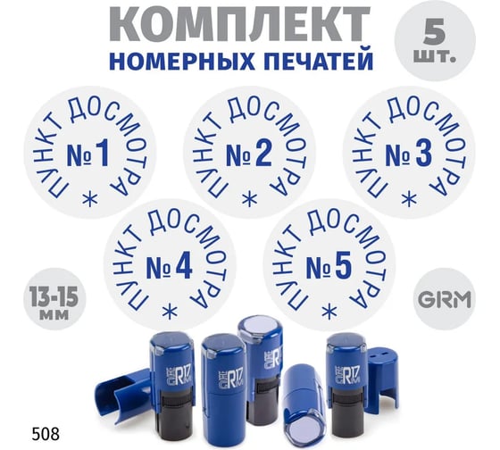 Комплект 5 печатей GRM пункт досмотра № 1, 2, 3, 4, 5, диаметр 15 мм, на r17 корпус синий 217100066-508