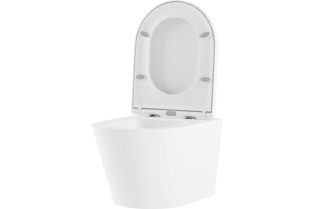 Безободковый компактный подвесной унитаз Rimless (длина всего 47,5 см). Стильное ультратонкое сиденье выдерживает нагрузку до 400 кг.