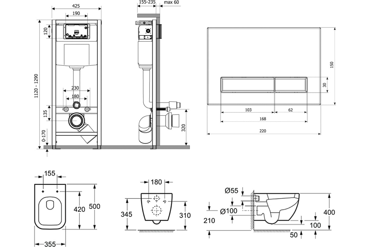 Комплект 9 в 1 Lavinia Boho One 75110294 универсальное решение для монтажа в любую сантехническую шахту вне зависимости от расположения инженерных коммуникаций.