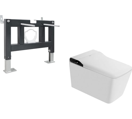 Комплект ABBER подвесной электронный унитаз-биде Rechteck AC1215S белый с импульсным смывом с инсталляцией AC0101P AC1215S-AC0101P