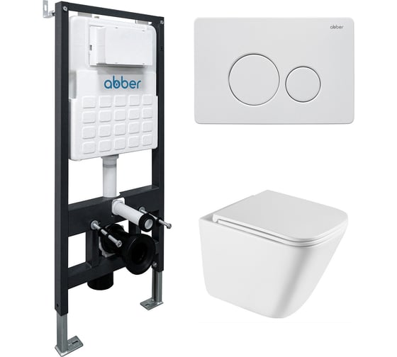 Комплект ABBER подвесной унитаз Rechteck AC1219TC белый, с закрытым дном с инсталляцией AC0105 и кнопкой AC0121MW белая матовая AC1219TC-AC0105-AC0121MW