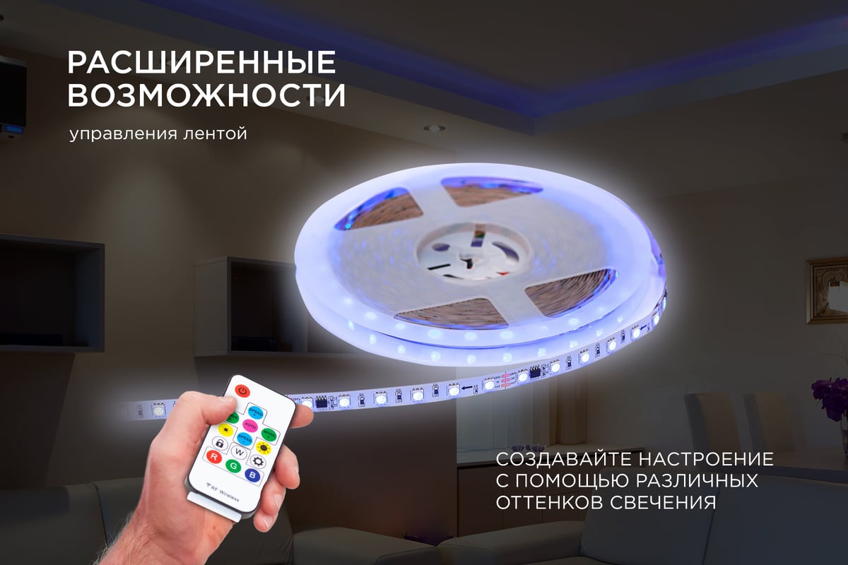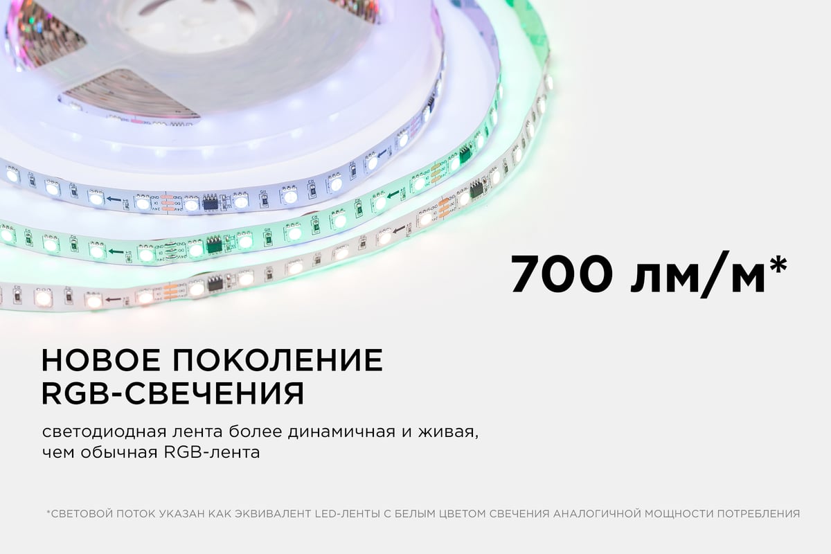Преимущества Apeyron 24В, 14,4Вт/м, smd5050, 60д/м, IP20, подложка 10мм (белая), 10м, RGB 10-99