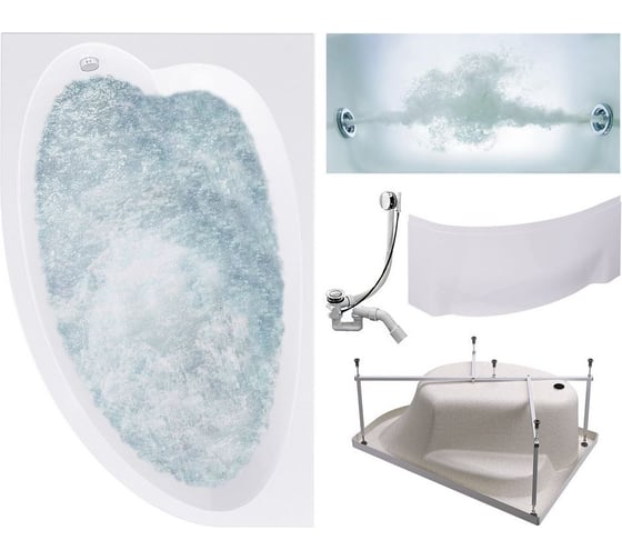 Комплект Акриловая ванна TIMO IVA1595L 150_95_70+Каркас + Слив-перелив+Гидромассаж 6 форсунок+Фронтальная панель IVA1595L-KTIVA15-SPV1505-T-CM-FPIVA15L