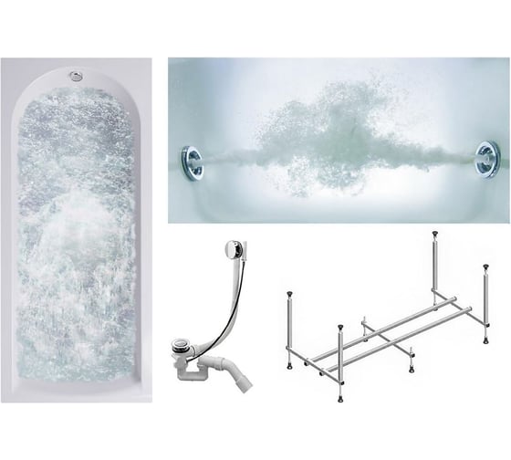 Комплект Акриловая ванна TIMO MIKA1880 1800_800_580+Каркас+Слив-перелив+гидромассаж 6 форсунок MIKA1880-KT18-SPV1505-T-CM