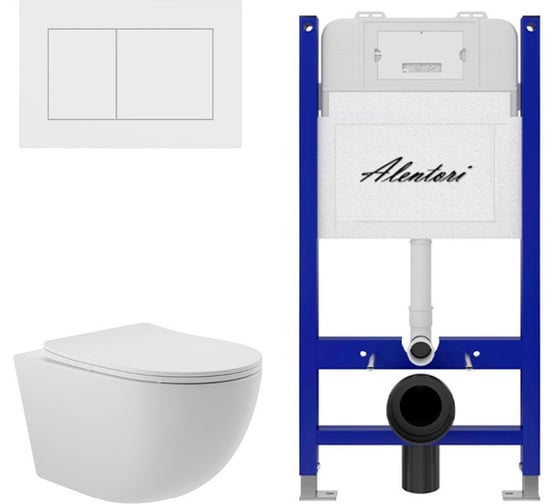 Комплект ALENTORI Инсталляция для унитаза SISTEMA 50 AL.SIS33T с клавишей CHIAVE A, белый мат AL.CHI020WM + Унитаз Long 525х360 безободковый, Vortex (Торнадо), Soft-Close, белый мат, овал AL.SIS33TAL.CHI020WMOV2120