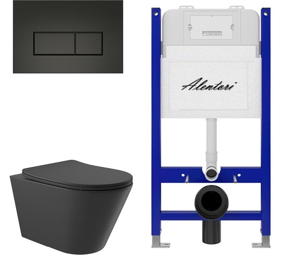 Комплект ALENTORI Инсталляция для унитаза SISTEMA 50 AL.SIS33T с клавишей CHIAVE H, черный мат AL.CHI203BM + Унитаз Long 525х360 безободковый, Vortex (Торнадо), Soft-Close, черный мат, конус AL.SIS33TAL.CHI203BMCV2140